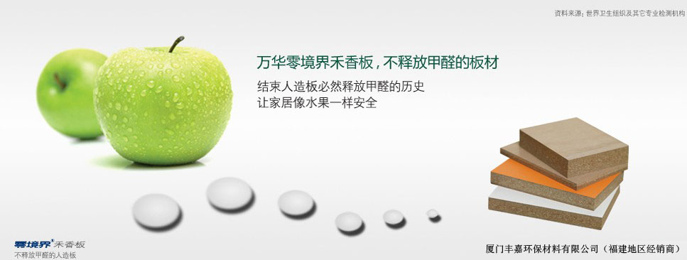 | 厦门丰嘉环保材料有限公司成立于2004年04月22日,是万华福建地区总经销商,主要经营万华零境界无甲醛禾香板;帮助客户共同开启零甲醛家具、装修市场、产品技术支持;万华零境界无甲醛禾香板品质历经全球三大国家权威认证,是世界上最安全的新型环保板材。本公司坐落于中国福建省厦门市,供应零境界无甲醛禾香板,欢迎惠顾! |