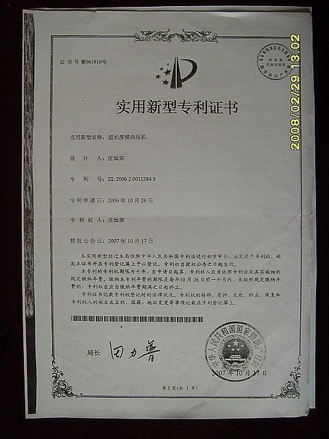 排板机专利证书