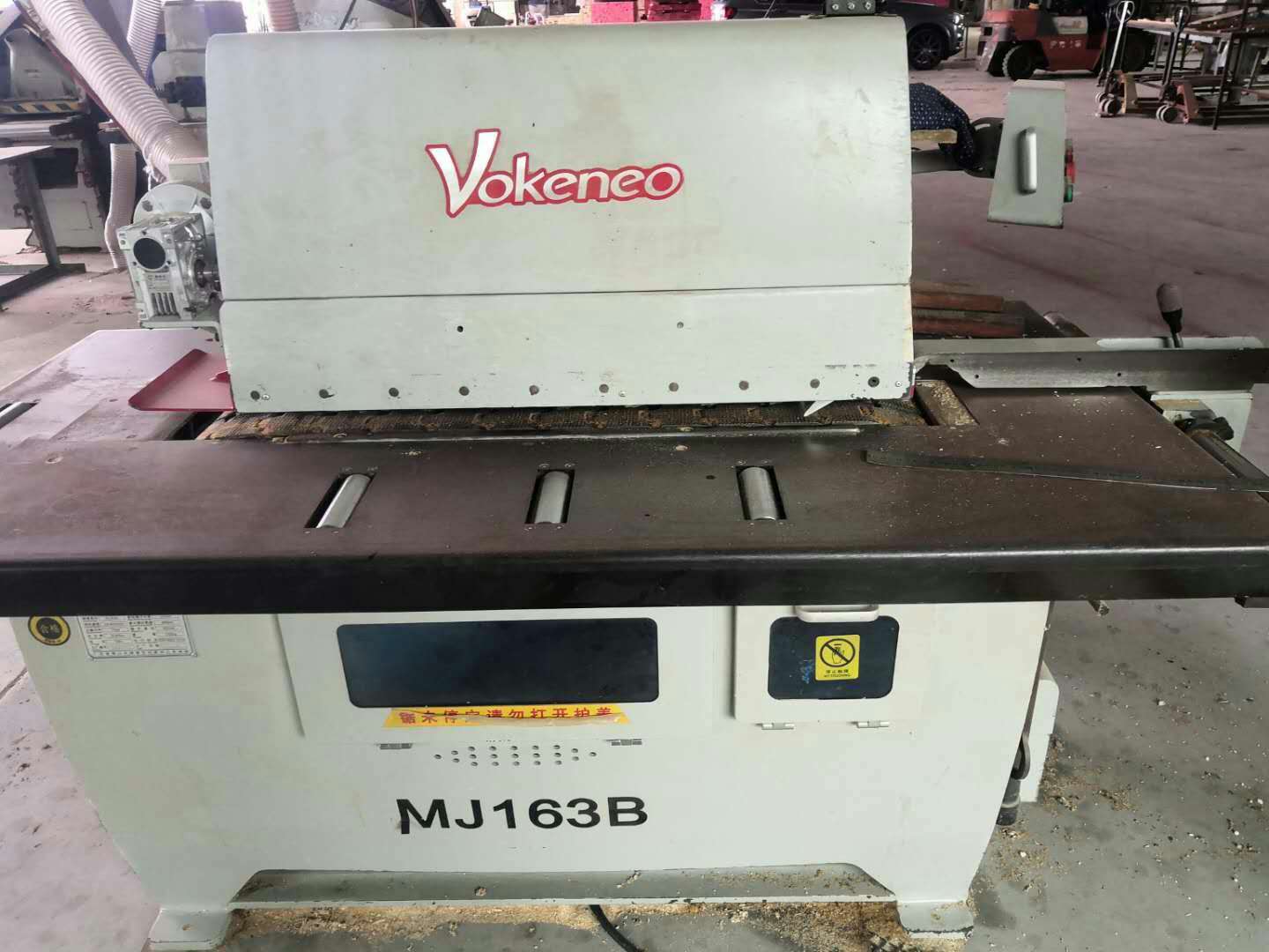 【沃克尼奥MJ163B下轴单片锯】参数规格 产地:顺德 品牌:沃克尼奥 型号:MJ163B 锯轴直径:50.8mm 送料速度:10-40m/min 主轴功率:11kw 总功率:12.87kw 电压:380V 锯切厚度:90mm 锯切长度:220mm 锯切宽度:390mm 锯片直径:405mm 机器重量;1700KG 【沃克尼奥MJ163B下轴单片锯】适用范围 东莞市汇胜木工机械机械有限公司经营有: HOMAG(金田豪迈)、BIESSE(比雅斯)、MASTERWOOD(万事合) 、MARONI(万隆)、WELLEX(华力) NanXing(南兴) 、KDT(弘亚) 、DMA(迪碼) 、HOLD (豪徳) 、CASATI、VIMA, ORMA 、KUPER 、 PAOLONI、 LAZZARI、欧登多、IDM、(飞龍)、VIET、GIBEN、SCM,马氏,驭骏,先达,恩德,庄田,广荣,胜源等进口,国产品牌适用的配件。部分进口配件:1 BUP刀具;2 TEKNOMOTOR高频马达;3 PNEUMAX 、Rexoth、PARKER、 NOGREN气动;4 德国IKS切皮刀;5 施耐德(TE)行程开关、西门子电器、 金鐘、BERNSTEIN 、PIZZATO电器;6 SITI意大利减速箱;7 BREMBO刹车片; 8 HOHNER解码器。