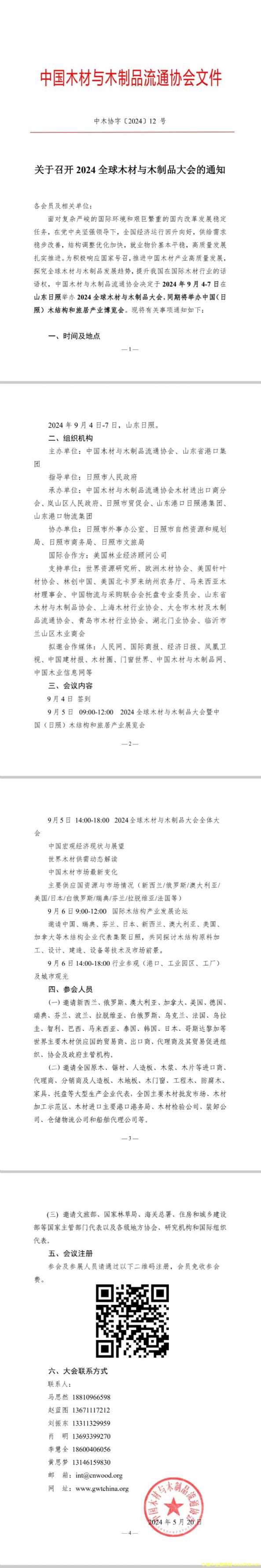 关于召开2024全球木材与木制品大会的通知