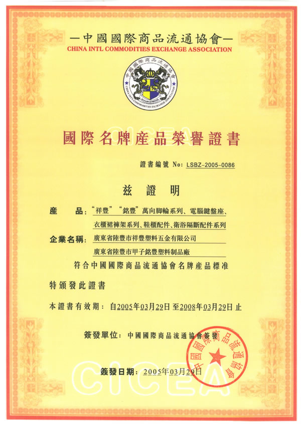 ¹ú¼ÊÃûÅÆ²úÆ·ÈÙÓþÖ¤Êé